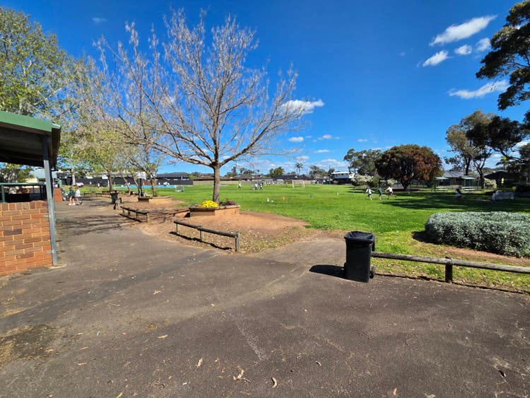 - multiple play areas including grassed oval, multi-purpose count, covered areas to sit, climbing playground, sand-pits